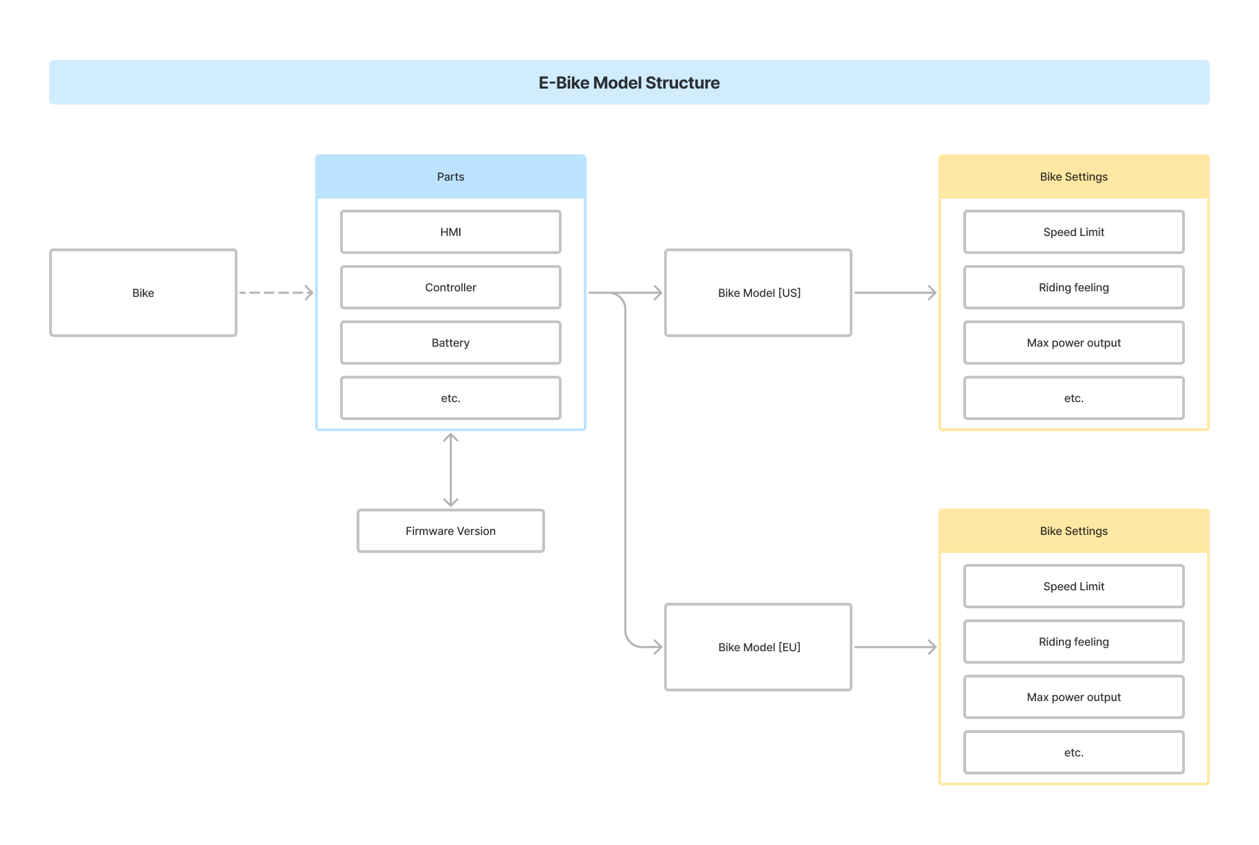 We introduce the bike model structure into the system, which serves as the foundation to streamline the information needed for the e-bike when it is being assembled and serviced.