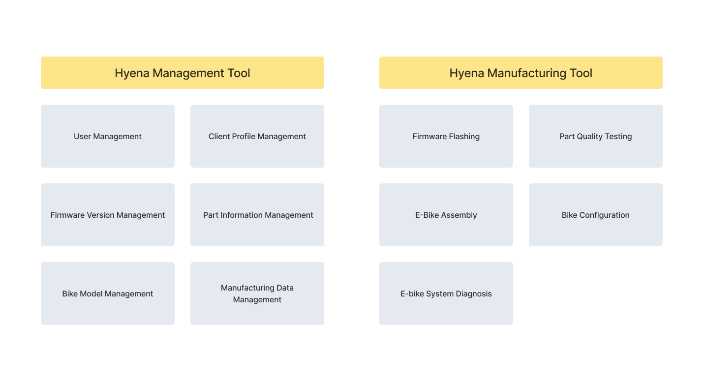 Our goal for this project is to recapture the aspiration for Hyena's software systems, which made Hyena stand out from the competition. The original concept was simple: provide an e-bike system solution with deep integration between software and hardware. Our ambition is to set a strong foundation to support future product developments as the business grows faster.